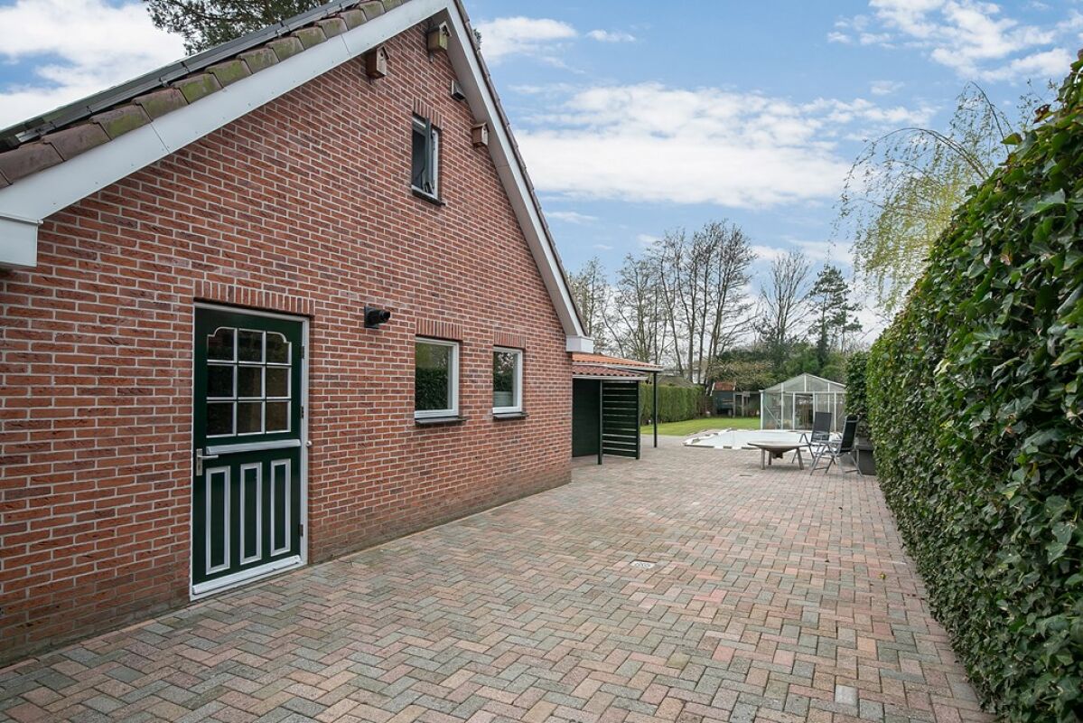 De fraaie diepe verzorgde tuin op het westen is voorzien van een ingebouwd zwembad met verlichting en filterinstallatie, tuinhuis, kas, moestuin en kippenhok. Op het dak van de garage liggen 16 zonnepanelen met een gemiddelde opbrengst van 3300 KWh op jaarbasis.