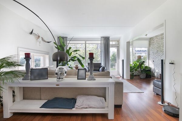 Via de deur met rolhor in de woonkamer is het 10 meter brede balkon op het zonnige zuidwesten te bereiken. Het uitzicht naar het vele groen en speeltuin Hilvoorde is prachtig. Zie jij jezelf hier al zitten?