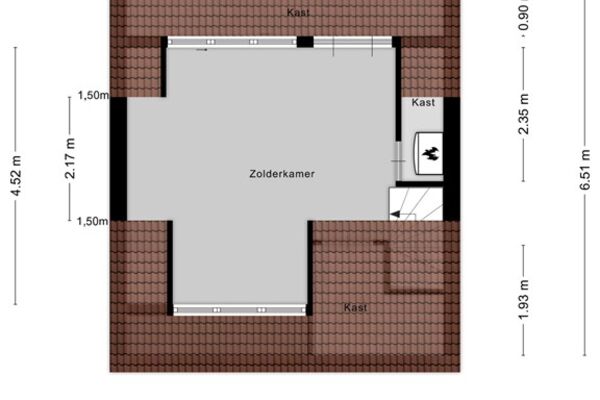 Via een vaste trap bereik je de ruime en lichte zolderverdieping, die dankzij de grote dakkapel en nokverhoging een volwaardige derde slaapkamer of ideale werkplek vormt. Achter de knieschotten vind je nog eens extra praktische opbergruimte.