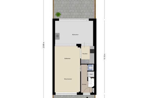 Je komt binnen in de lichte hal met garderobe, toilet (modern betegeld), meterkast en trapopgang naar de eerste verdieping. Vanuit de hal loop je door naar de ruime, sfeervolle woonkamer met grote ramen en prettige lichtinval. De woonkamer is fraai afgewerkt en biedt genoeg ruimte voor een aparte zithoek en eethoek.