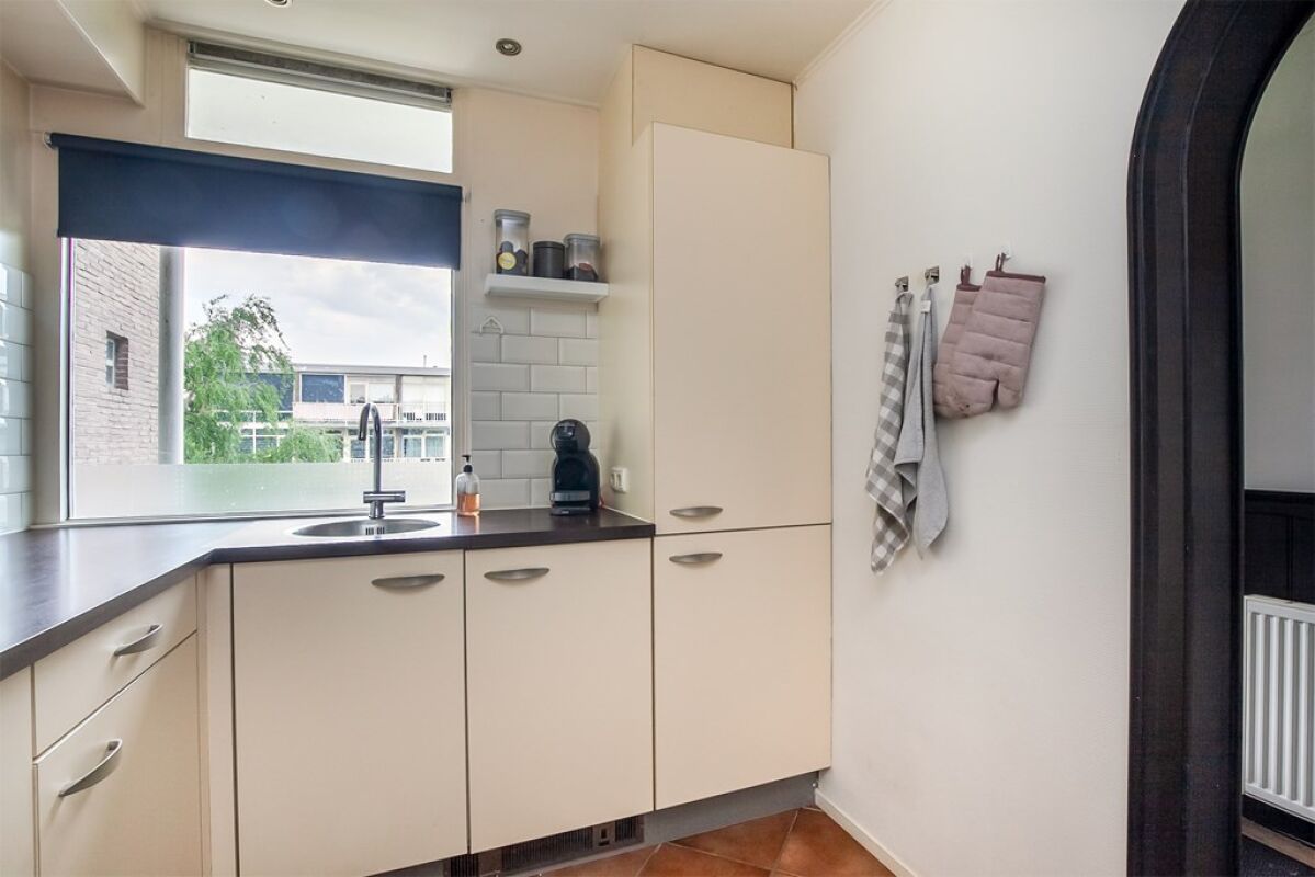 Indeling: Entree/galerij, 3e etage, hal/gang met kapstok en sfeerspots, ,meterkast met 5 groepen,kookgroep en aardlekschakelaar, moderne keuken met keukenblok en inbouwspots,voorzien van afzuigkap, koelkast, gasplaat en combi magnetron.