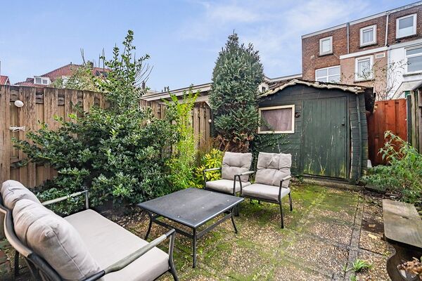 Via de keuken kunt u de ruime tuin makkelijk betreden. De achtertuin heeft overdag veel zon en is betegeld. De tuin beschikt over een vrijstaande berging.