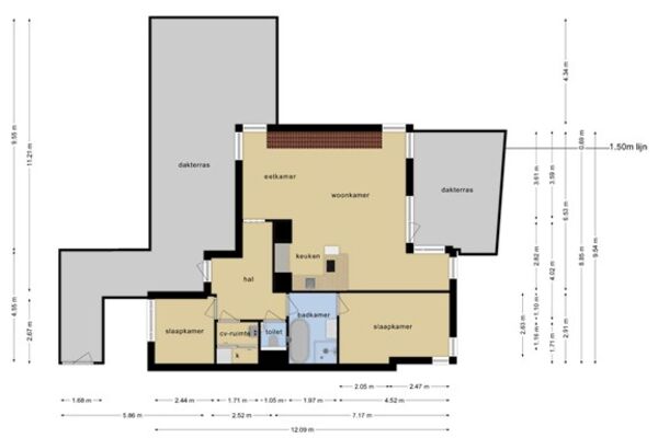 Dit penthouse beschikt niet slechts over één, maar twee dakterrassen, waarvan er één in bruikleen is. Aan de ene zijde van de woning treft u een dakterras van ongeveer 40 m2, omringd door gelaagd glas voor een gevoel van privacy en beschutting tegen wind. Aan de tegenovergestelde zijde bevindt zich een dakterras van ongeveer 16 m2, zodat u kunt genieten van de zon wanneer u maar wilt. De beplante potten en bakken zijn voorzien van geautomatiseerde irrigatie, waardoor uw buitenruimte eenvoudig te onderhouden is.