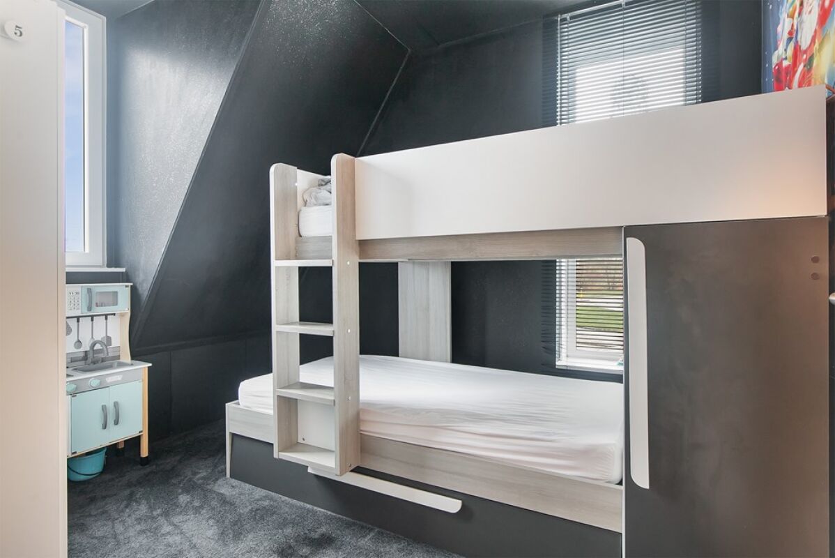 Vanaf de trap naar de 1e verdieping tot aan de zolder, is de woning voorzien van een lekker dik tapijt. Op de eerste verdieping tref je een kinderkamer met een stapelbed voor 3 personen, een slaapkamer met een grote tweepersoonsbed en een badkamer met inloopdouche.