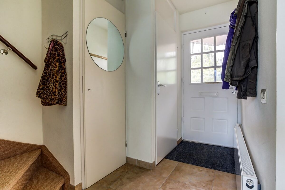 De hal geeft toegang tot de in 2018 vernieuwd toilet met wandcloset en fontein. Het toilet heeft licht terracotta tegels en een natuurstenen vloer. Ook leidt de hal naar woonkamer, trapopgang en meterkast.