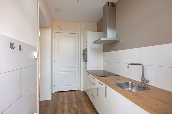 De woonkamer biedt een fijne leefruimte met aangename lichtinval en voldoende plaats voor zowel een comfortabele zithoek als een eethoek. De separate keuken is functioneel opgesteld en voorzien van onder meer een inductiekookplaat met 4 zones, koelkast en combimagnetron en vaatwasser. De wasmachineaansluiting bevindt zich in de kast naast de keuken, wat praktisch is in het dagelijks gebruik. De in 2022 vernieuwde keuken, badkamer en het toilet zorgen samen voor een verzorgd en modern geheel. Verder is de woning voorzien van kunststof kozijnen, HR+ beglazing, dakisolatie en een combiketel in eigendom.