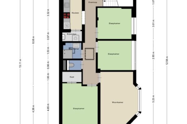 De woning heeft een woonoppervlakte van circa 88,5 m² en is praktisch ingedeeld met een ruime woonkamer, drie slaapkamers, een aparte keuken, een badkamer, een separaat toilet, handige kastruimte en een balkon. Dankzij deze indeling is de woning geschikt voor uiteenlopende woonwensen, bijvoorbeeld voor wie extra slaapkamers, een thuiswerkplek of een logeerkamer wenst. Het balkon vormt daarbij een prettig verlengstuk van de woning.