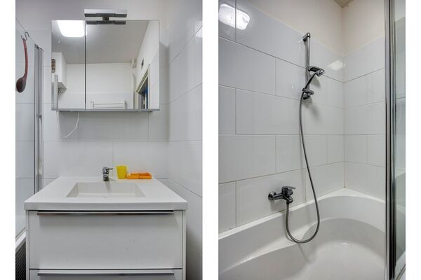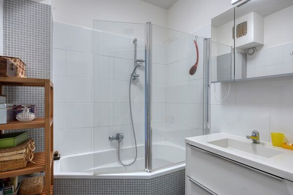 De keuken grenst aan de woonkamer en is praktisch ingedeeld met een vaste provisiekast en de opstelplaatsen voor de CV-combiketel en warmtepomp. Vanuit de hal bereikt u eveneens het moderne toilet en de badkamer, voorzien van een ligbad/douchecombinatie en wastafelmeubel. De slaapkamer ligt aan de voorzijde van de woning en kijkt uit over het groen.