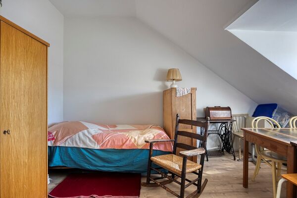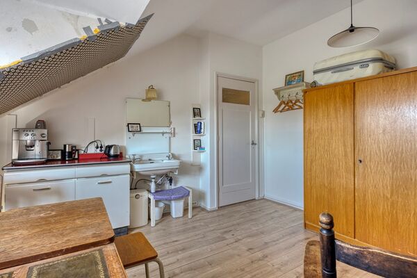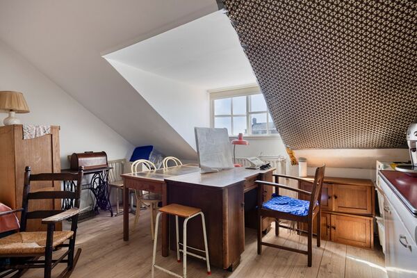 Op de derde etage bevindt zich een royale zolderkamer, bereikbaar via het trappenhuis. De ruimte is in 2022 volledig geschilderd, voorzien van nieuw laminaat en een opnieuw gestuct plafond. Daarnaast zijn extra wandcontactdozen aangebracht en is er een wastafel aanwezig. Deze kamer is uitstekend te gebruiken als werk-, hobby- of logeerkamer. De omvormer van de zonnepanelen bevindt zich hier, terwijl de brutoproductiemeter in de meterkast op de woonetage is geplaatst.