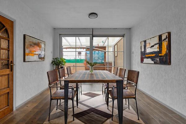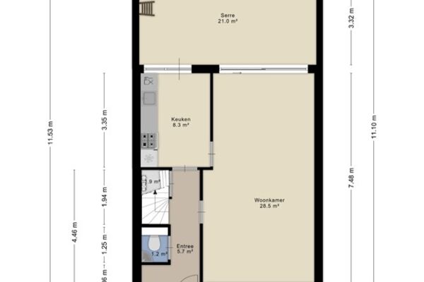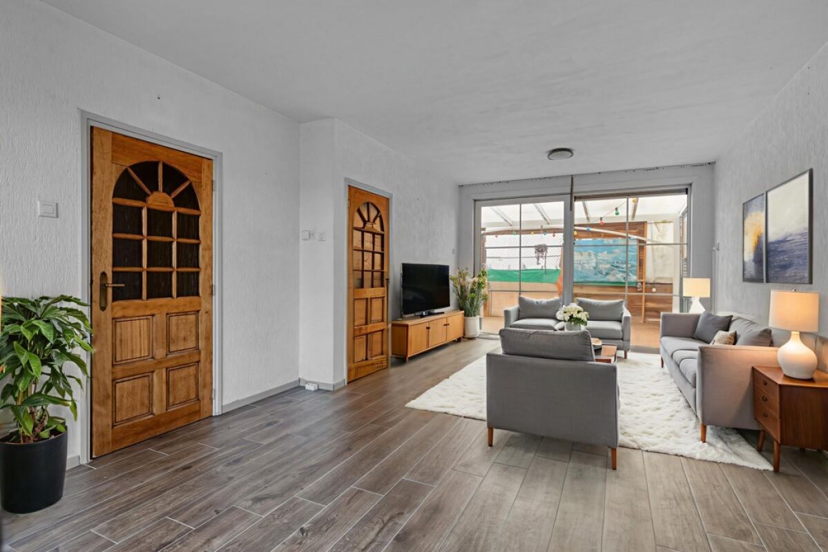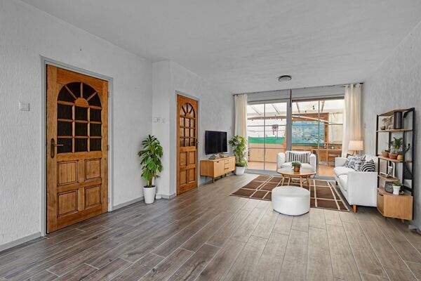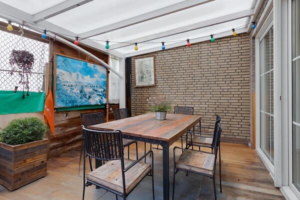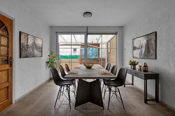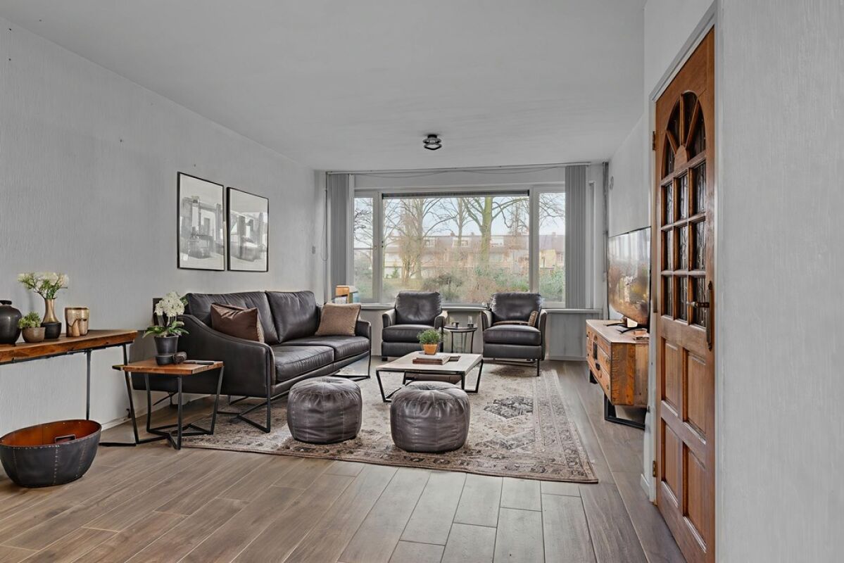 De woonkamer is ruim opgezet en biedt voldoende ruimte voor zowel een zit- als eethoek. Aan de achterzijde van de woning is een serre gerealiseerd die fungeert als verlengstuk van de woning richting de tuin. Deze ruimte zorgt voor extra lichtinval en een prettige overgang tussen binnen en buiten, en wordt vooral gebruikt als praktische tussenruimte naar de tuin. De begane grond is voorzien van vloerverwarming, wat bijdraagt aan een aangenaam basiscomfort.