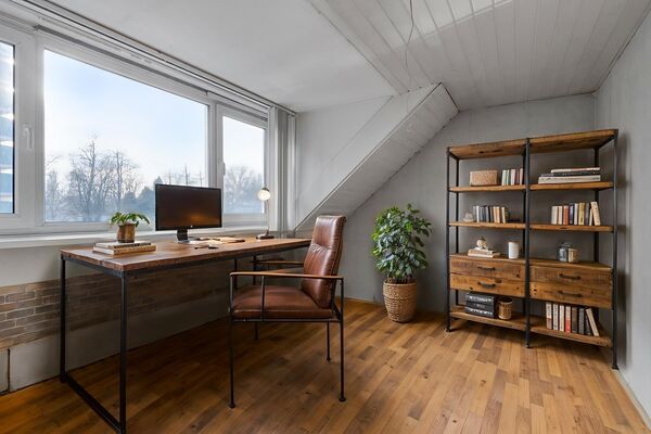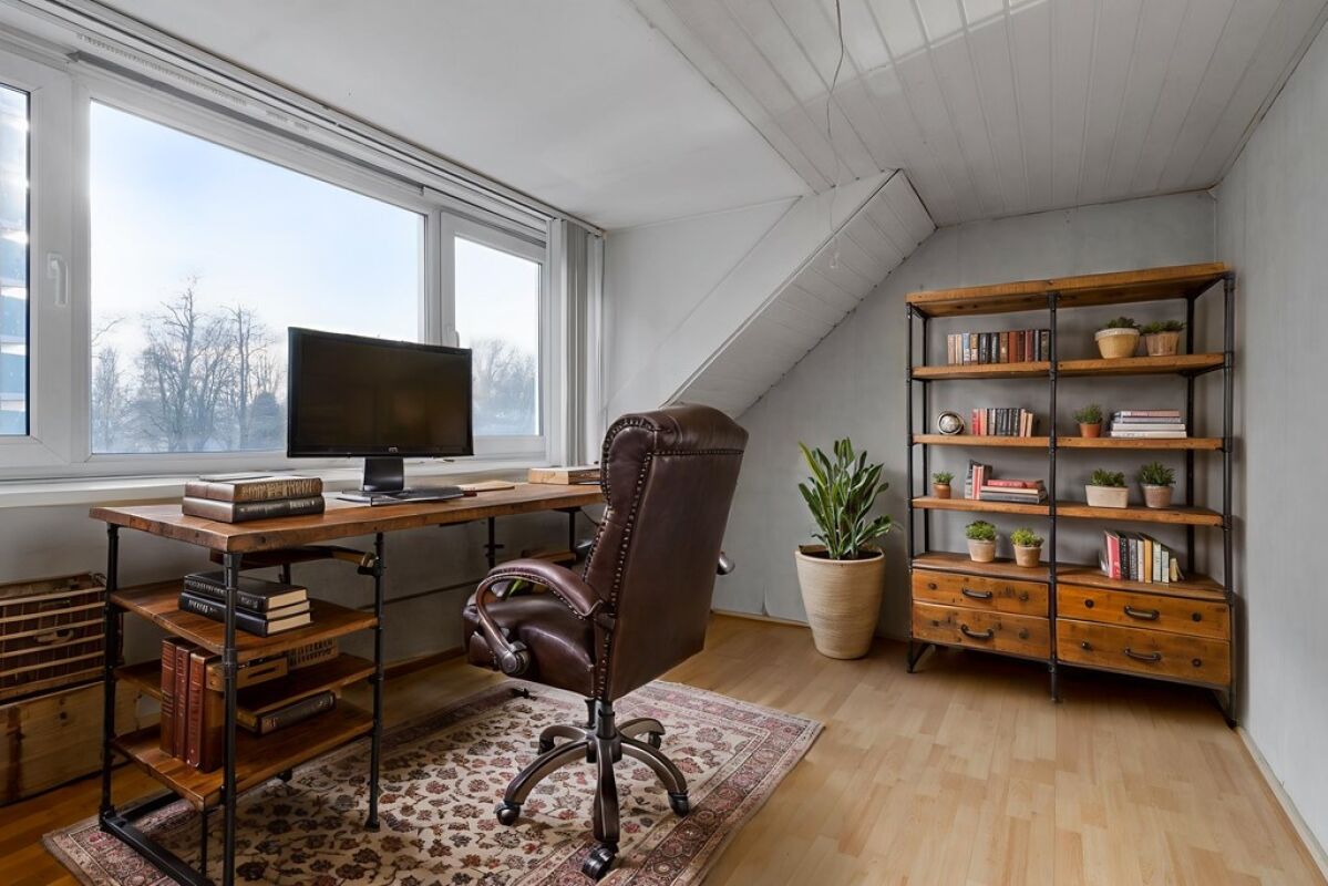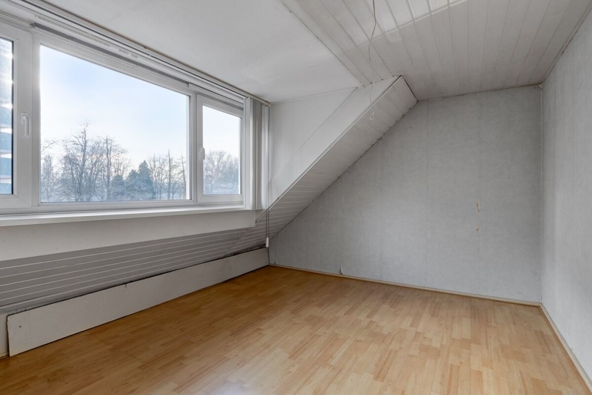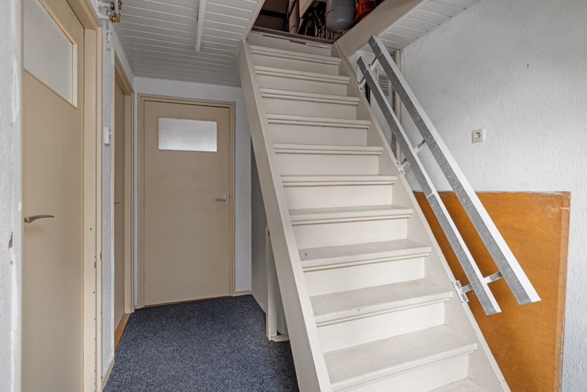 Via een vaste trap is de zolder bereikbaar. Deze ruimte biedt aanvullende gebruiksmogelijkheden, bijvoorbeeld als bergruimte of extra kamer, afhankelijk van de wensen van de gebruiker.