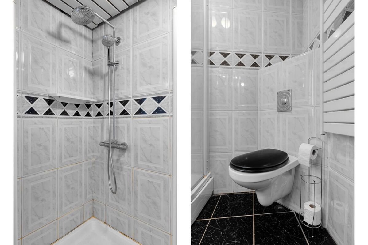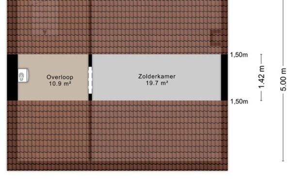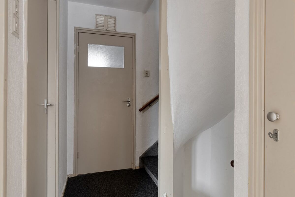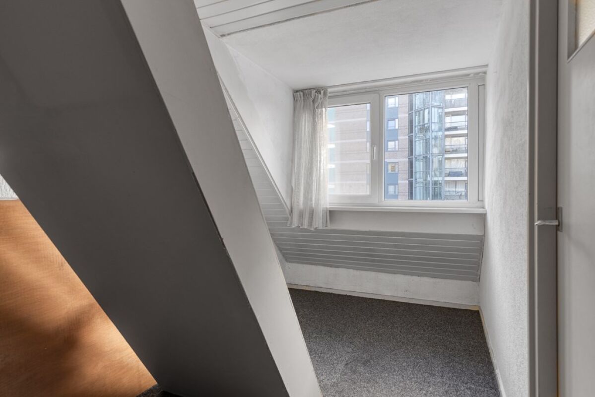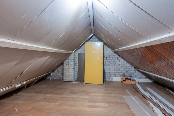 Via een vaste trap is de zolder bereikbaar. Deze ruimte biedt aanvullende gebruiksmogelijkheden, bijvoorbeeld als bergruimte of extra kamer, afhankelijk van de wensen van de gebruiker.