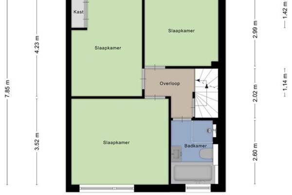 Op de eerste verdieping bevinden zich drie goed bemeten slaapkamers, allemaal voorzien van onderhoudsarme kunststof kozijnen.