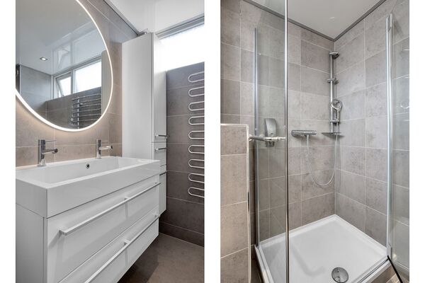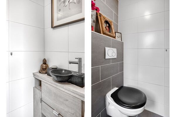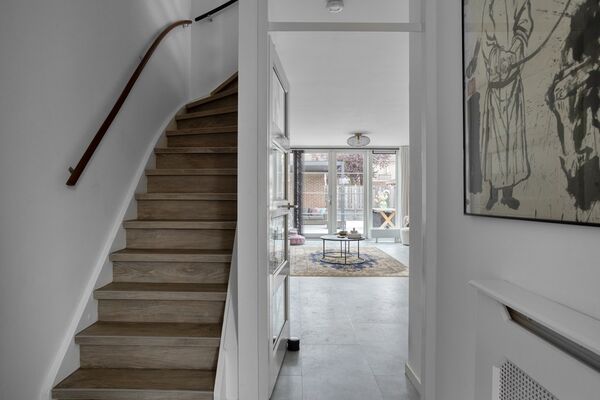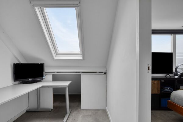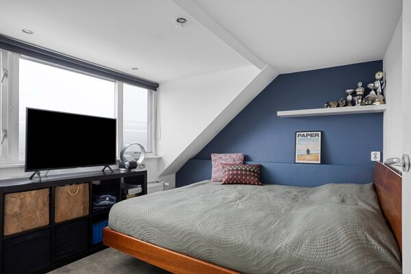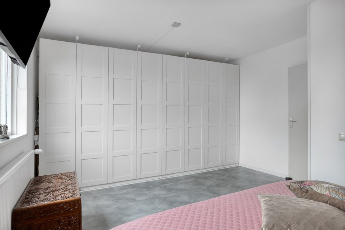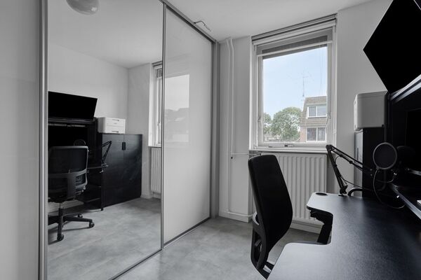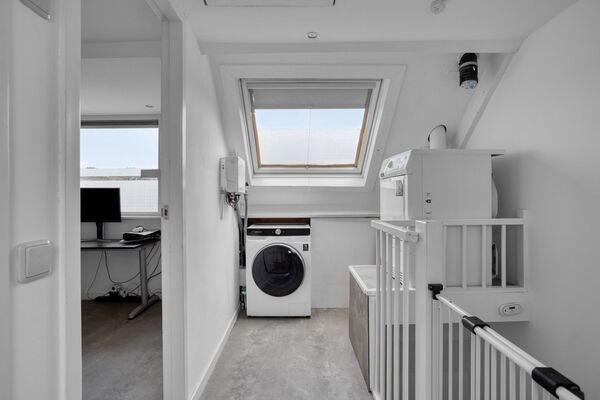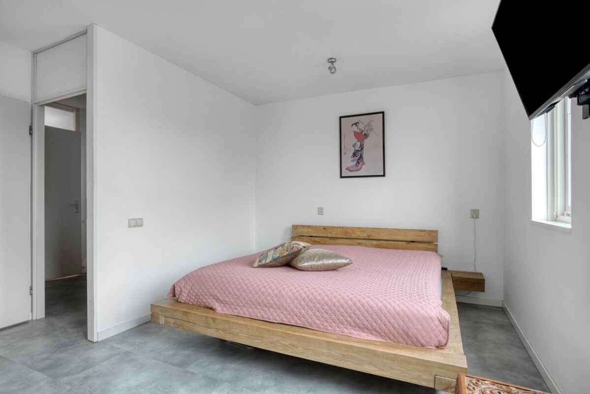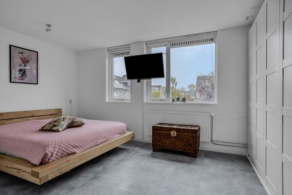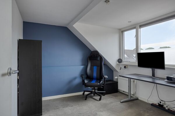 Op de eerste verdieping bevinden zich twee goed bemeten slaapkamers, waarvan de kleinste over de volle breedte is voorzien van een praktische inbouwkast. Daarnaast is er een verzorgde badkamer met douche, wastafelmeubel en toilet. De tweede verdieping telt nog twee slaapkamers en beschikt over handige bergruimte achter de knieschotten. Met in totaal vier slaapkamers biedt deze woning volop ruimte voor een gezin, thuiswerkers of iedereen die behoefte heeft aan extra leefruimte.